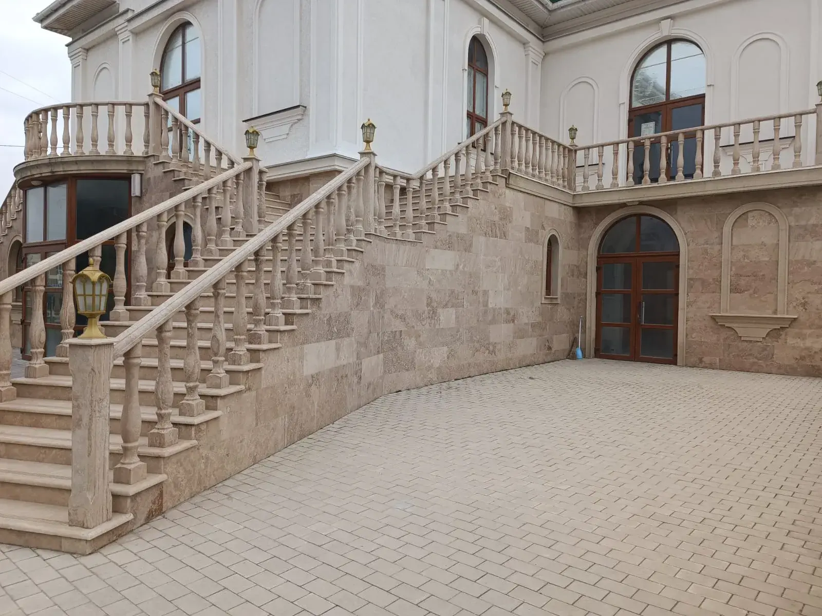 Фасады из натурального камня — это прочная и долговечная отделка, которая придаёт зданию благородный вид.